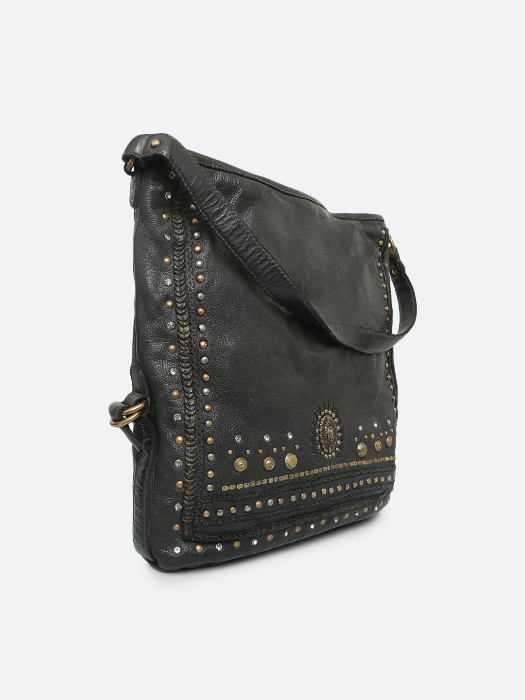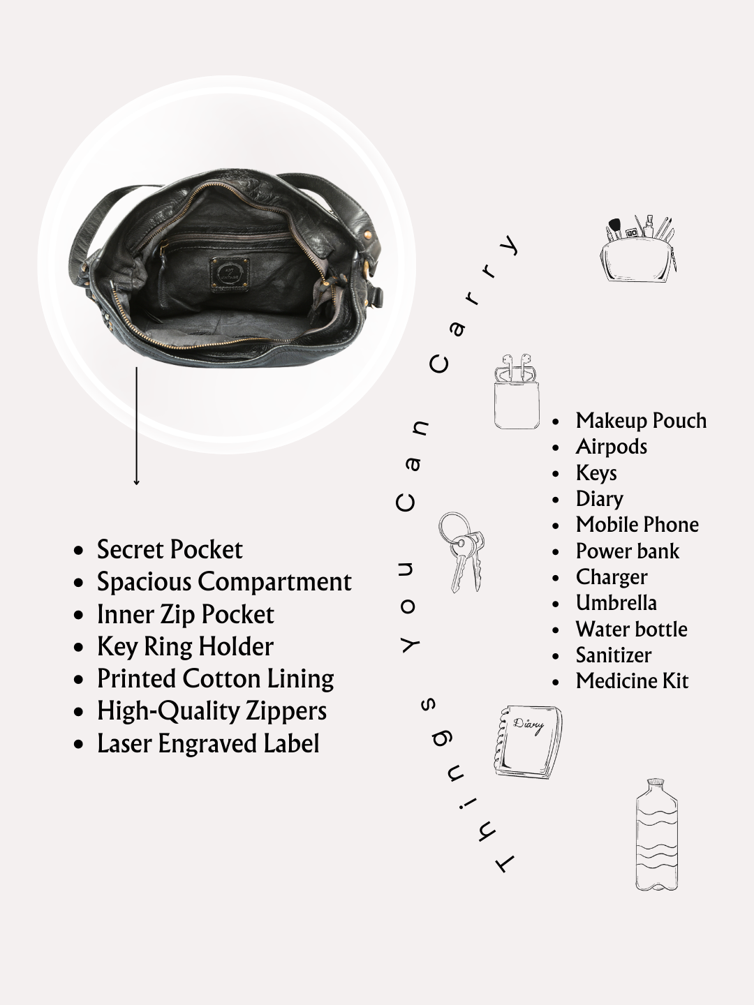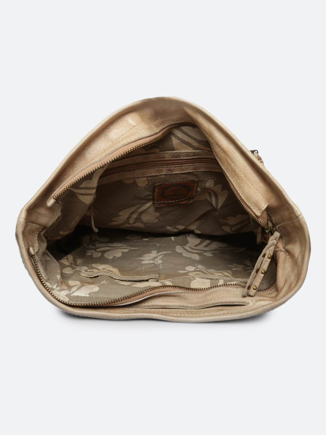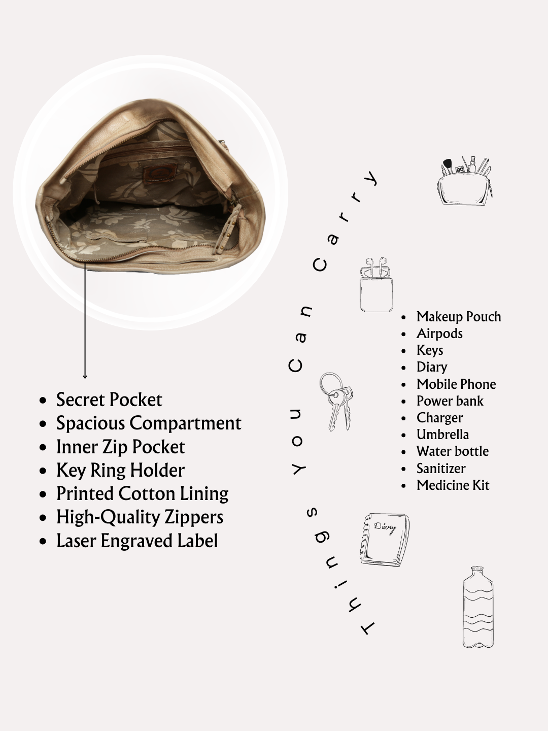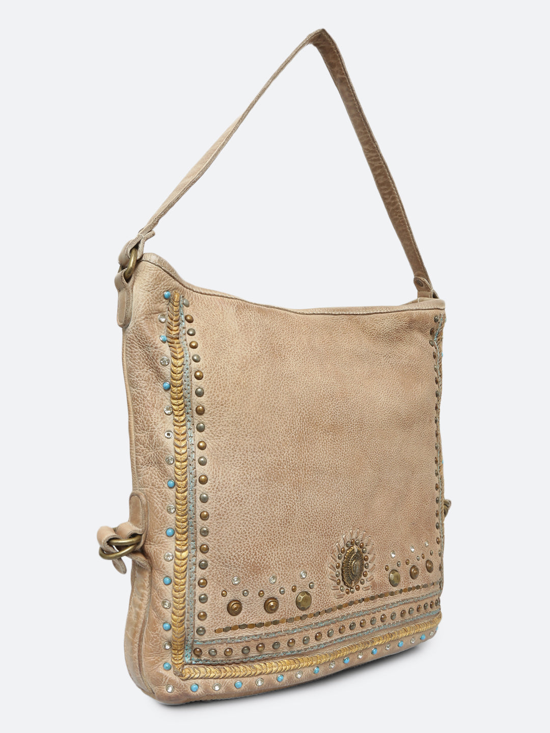 The boho ness of the bag is highlighted by the design and elements that have been put into it. The brass and silver mixed material decorates this bag. The spacious main compartment and zip pockets make it an ideal carry-on while traveling, at work, or as a maternity bag. The lack of a stylish maternity bag is countered with this hobo; now, you can walk with your baby in style and flaunt that bag. This bag has a comfortable handle to be carried on your shoulder easily.