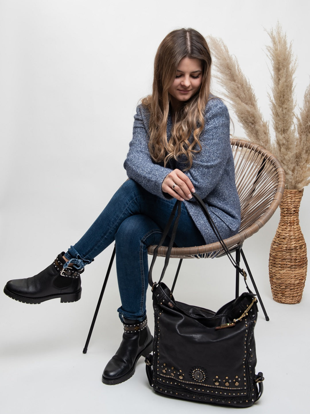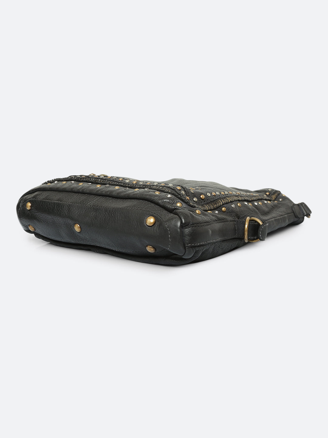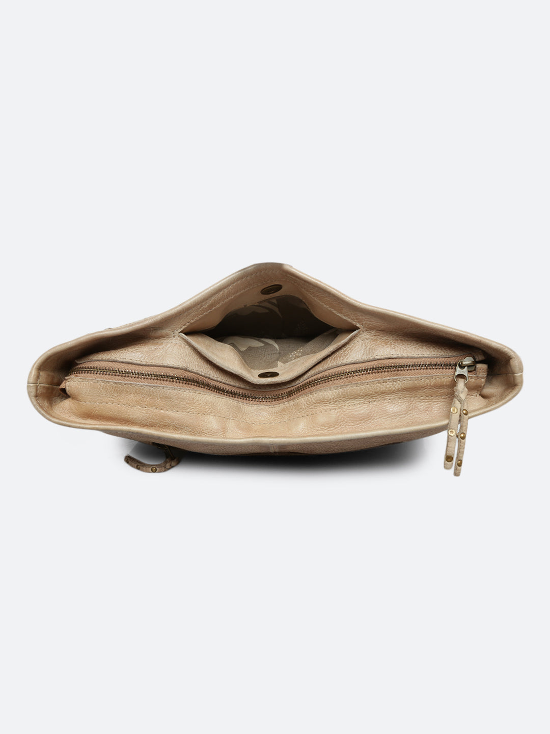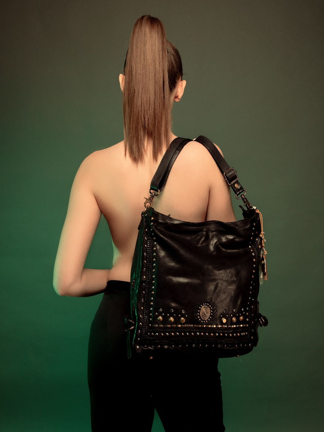 The boho ness of the bag is highlighted by the design and elements that have been put into it. The brass and silver mixed material decorates this bag. The spacious main compartment and zip pockets make it an ideal carry-on while traveling, at work, or as a maternity bag. The lack of a stylish maternity bag is countered with this hobo; now, you can walk with your baby in style and flaunt that bag. This bag has a comfortable handle to be carried on your shoulder easily.