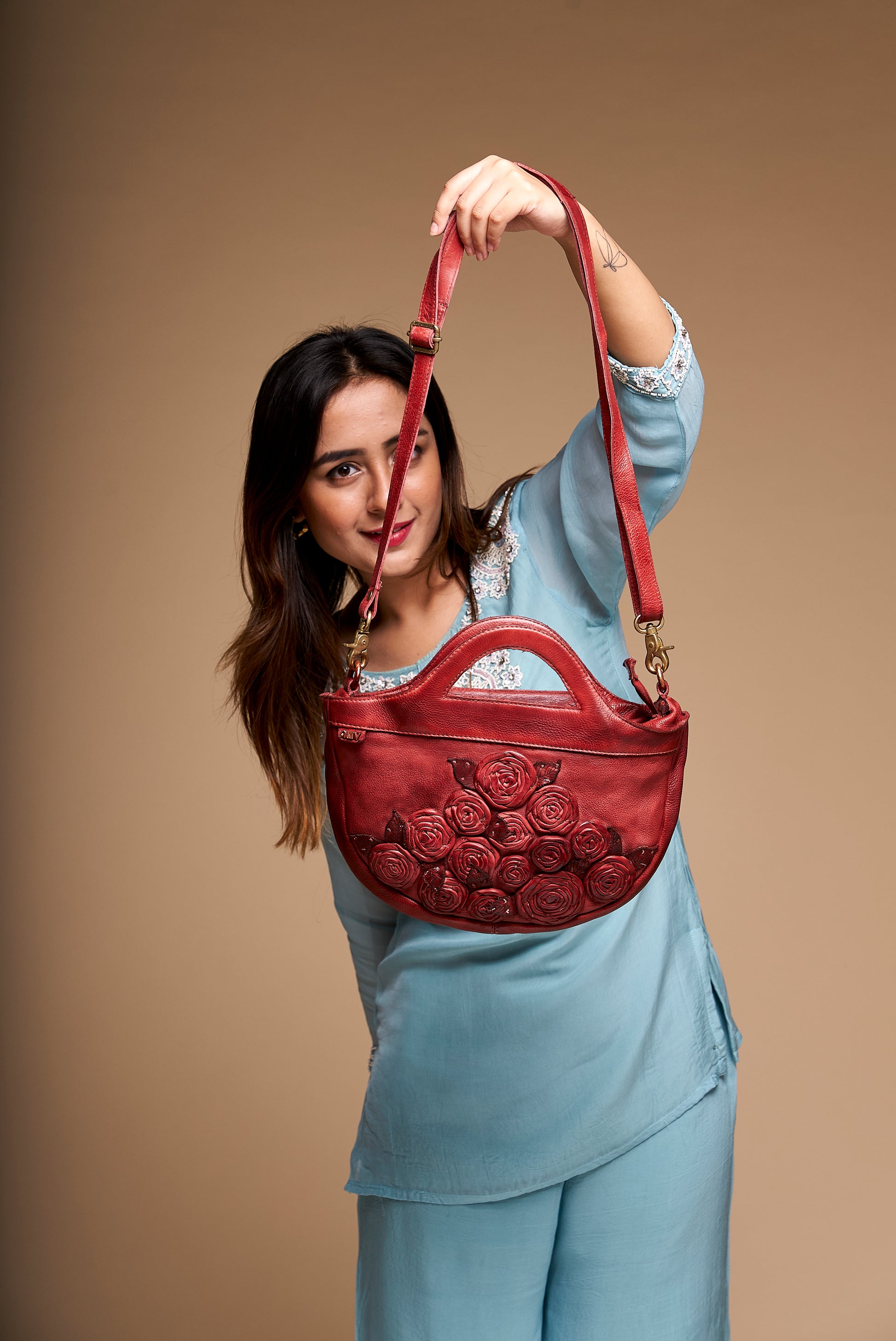 The SEPHORA Leather Handbag by Art N Vintage is a masterpiece of timeless craftsmanship and modern functionality. Crafted from 100% genuine leather, this bag showcases delicate rose appliqué details, embodying a perfect blend of art and elegance. Designed with both style and practicality in mind, it offers dual carry options, making it a versatile companion for any occasion.
