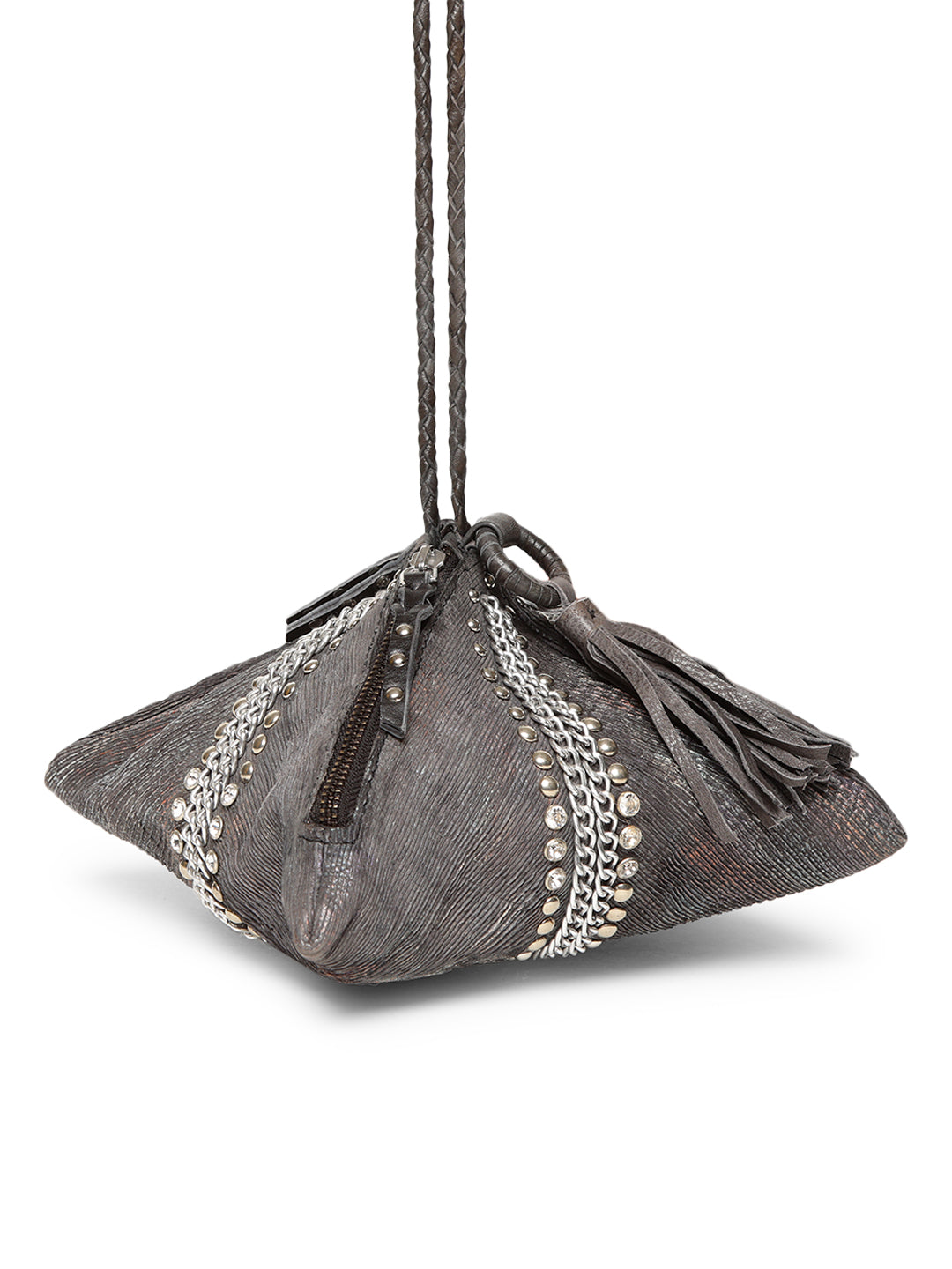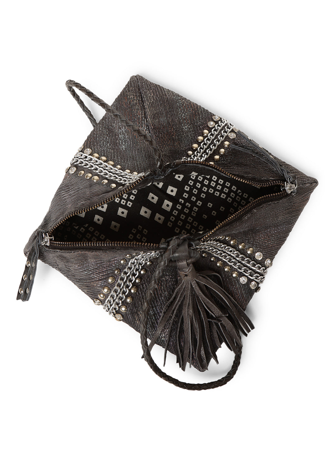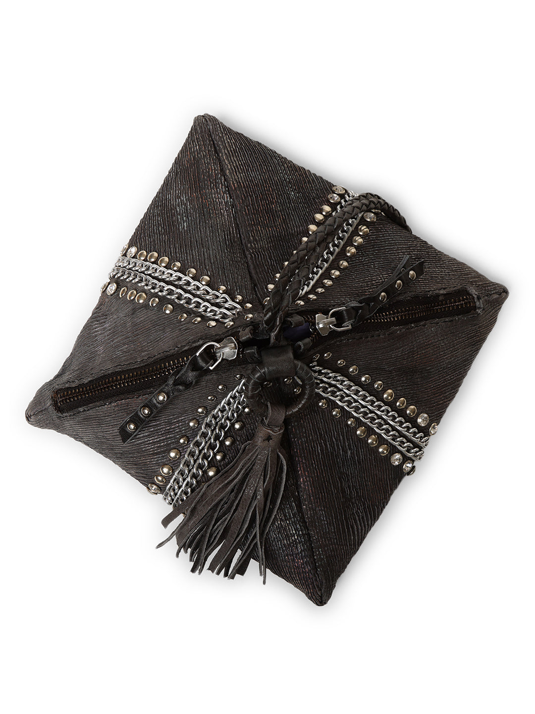 SILVIA: Black Sleek Leather Bag in Triangular Form By Art N Vintage