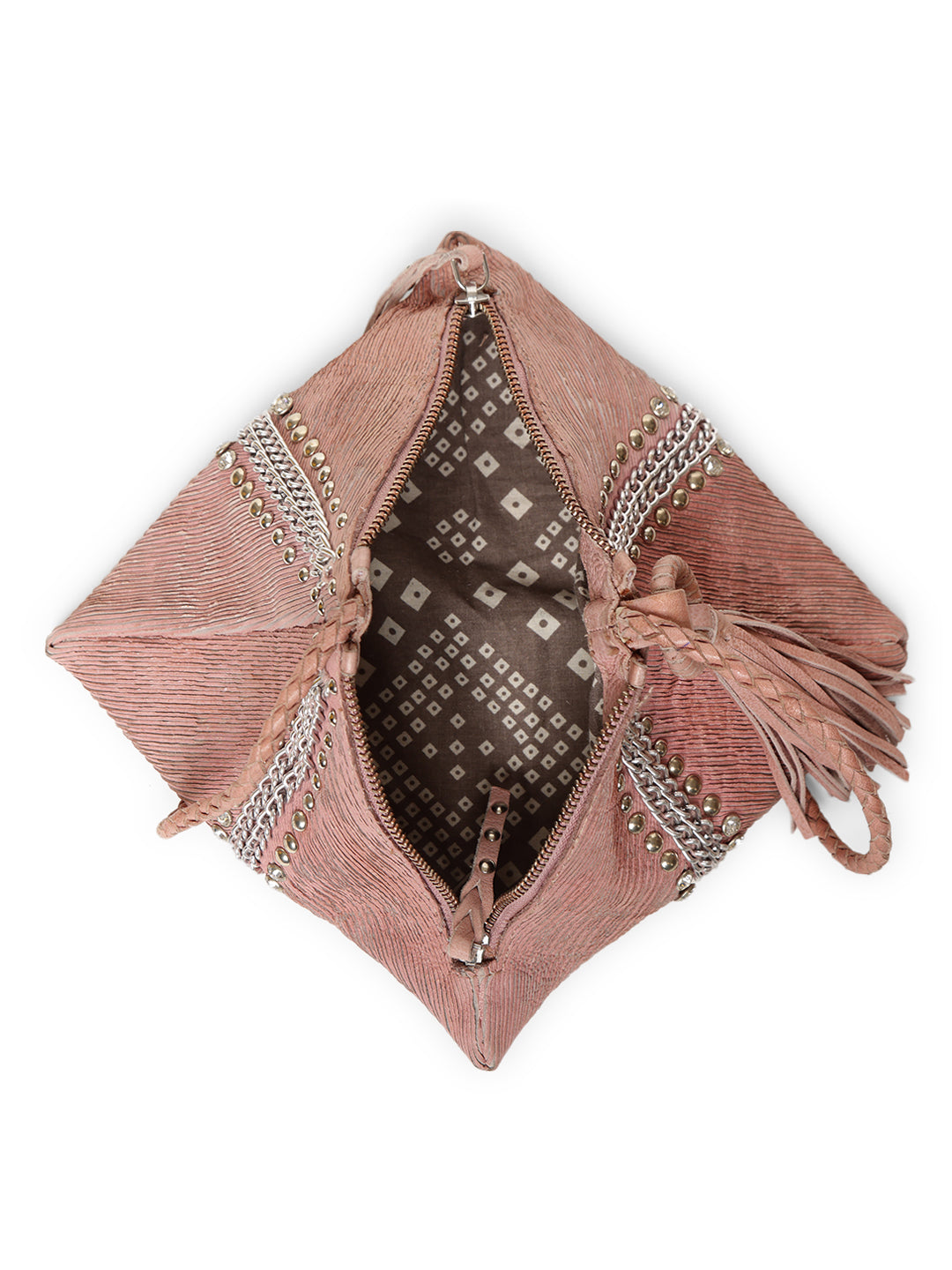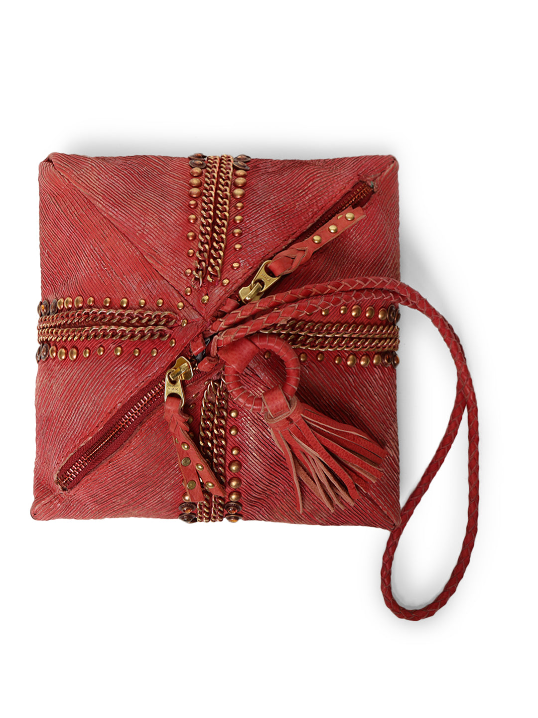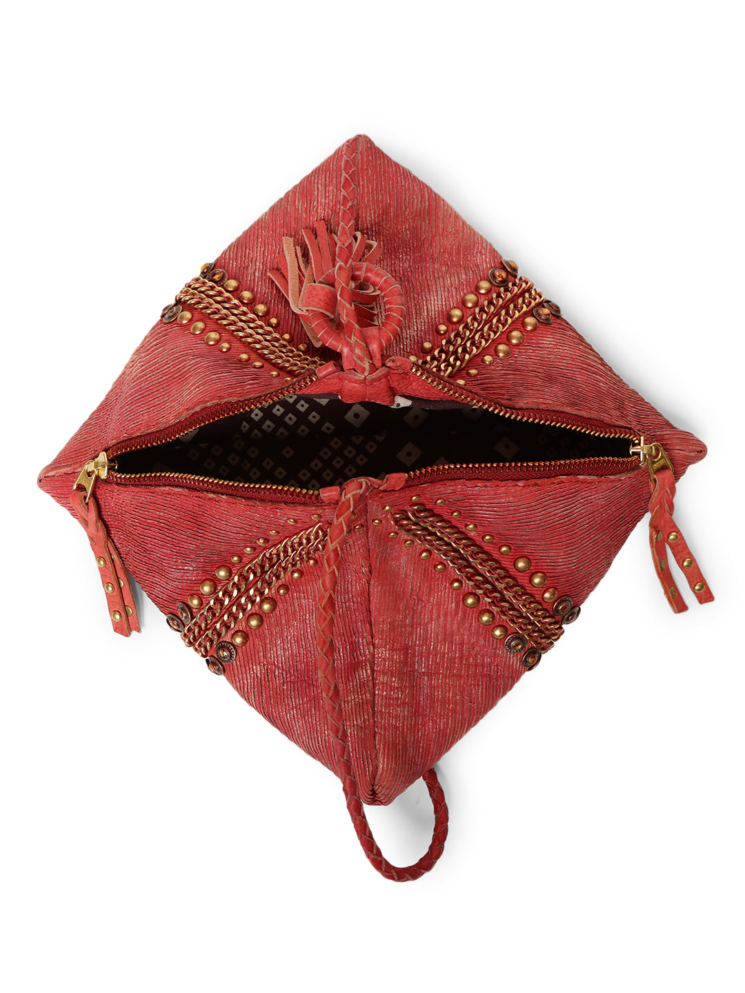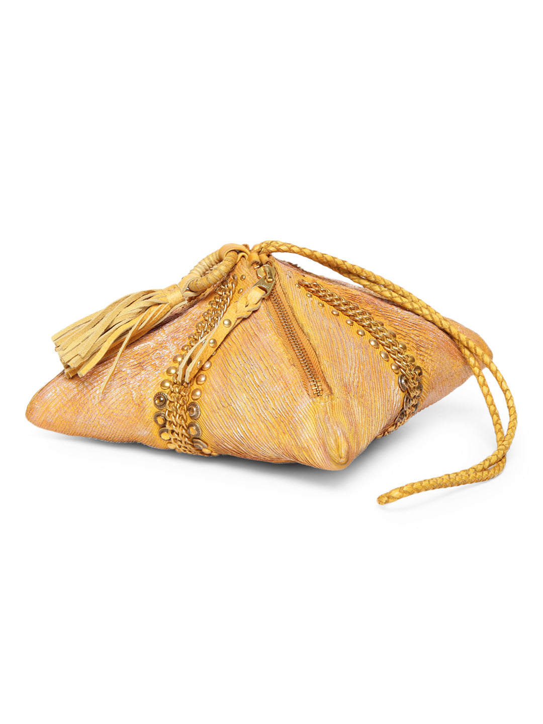 SILVIA: Black Sleek Leather Bag in Triangular Form By Art N Vintage
