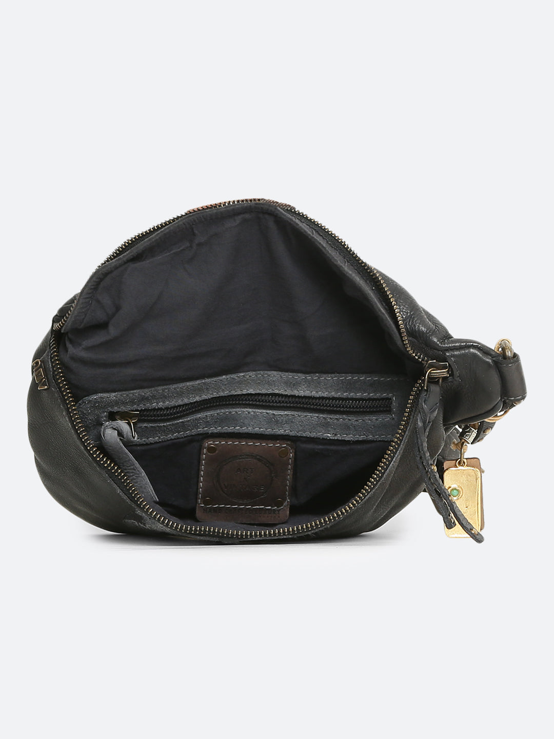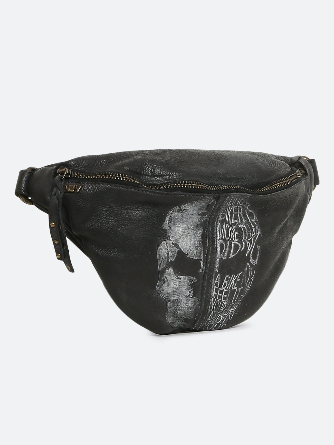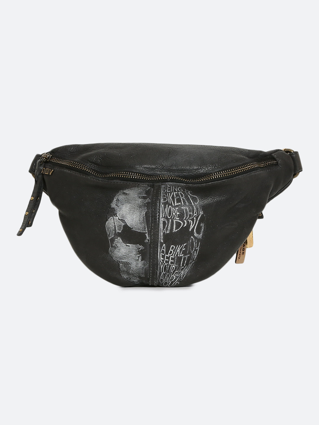 This unique waist bag is made of high-quality black leather and inspired by the HUNTERS. The bag features a brass buckle and multiple pockets, perfect for carrying essentials like a charger, wallet, keys, and mini instruments to hunt on the road most excellently. The bag is ideal for anyone who wants to add a touch of style and adventure to their outfit. Product Details: