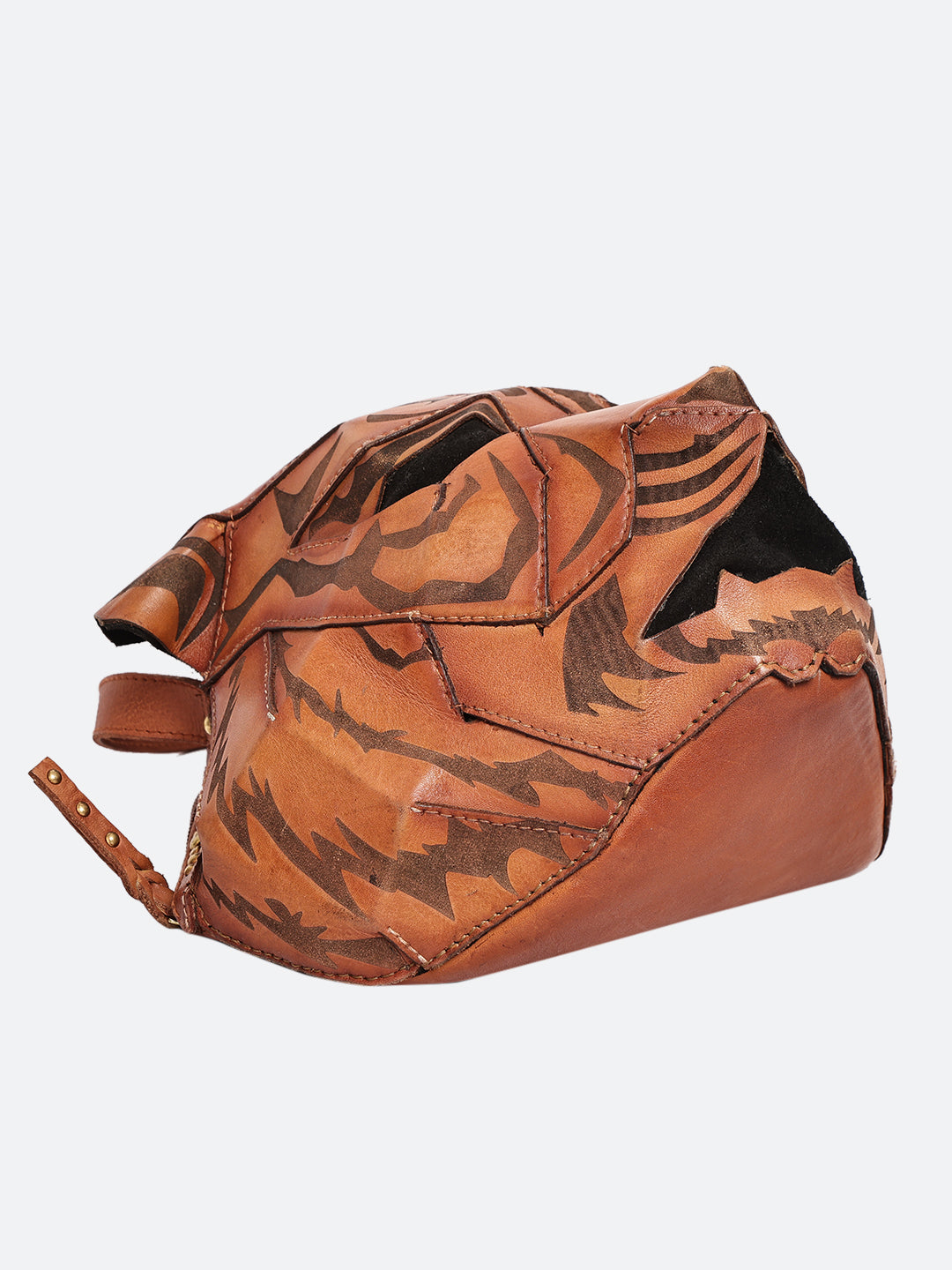Shaped by hand and built like a sculpted emblem, this tiger-inspired piece carries the raw geometry of the wild. Its layered leather panels create depth and expression, giving it a bold, art-object presence. Ideal for someone drawn to statement pieces that feel powerful, instinctive, and unapologetically different.