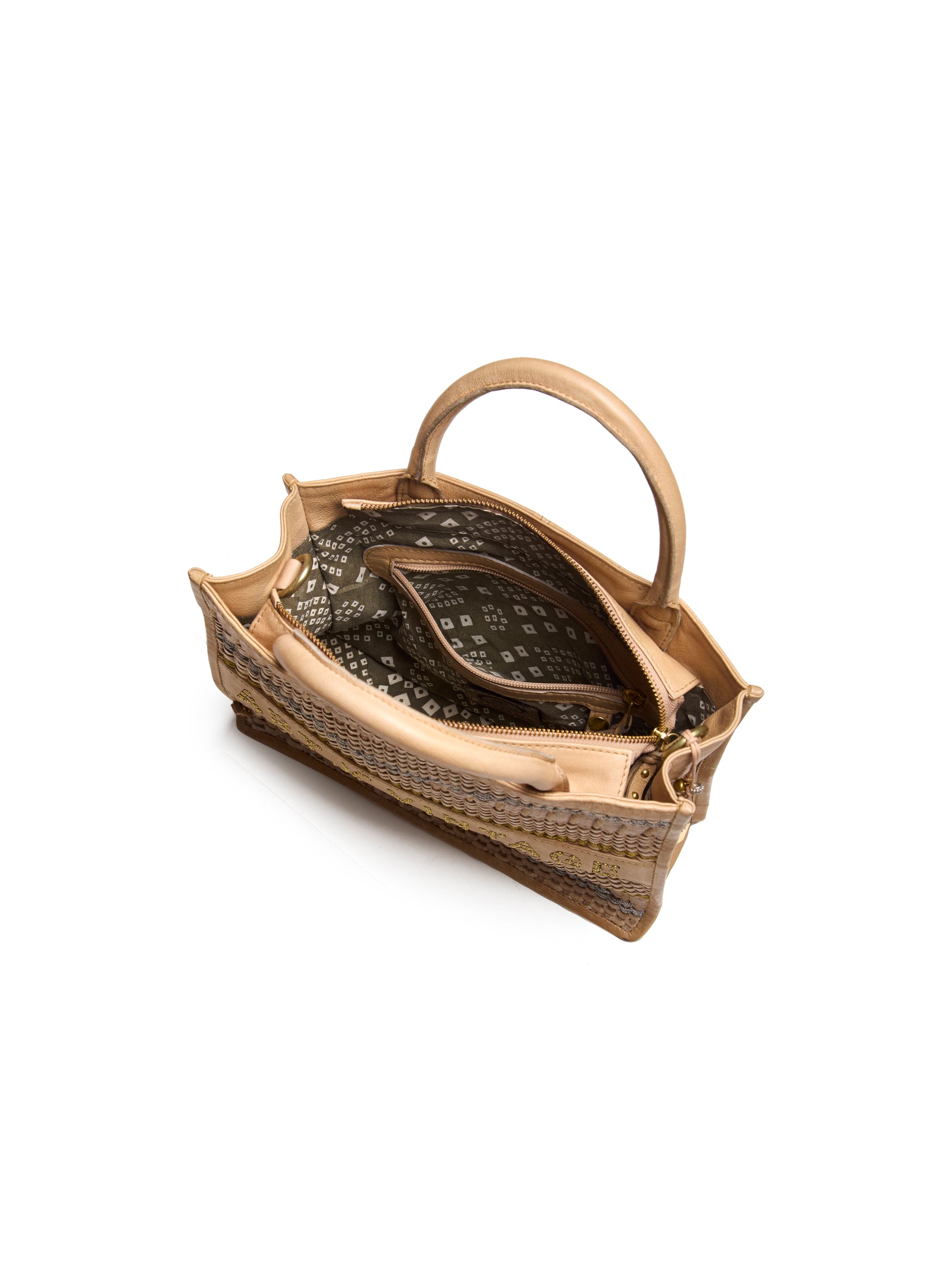 VALERIA: Womens Real Beige Leather Tote Bag by Art N Vitnage