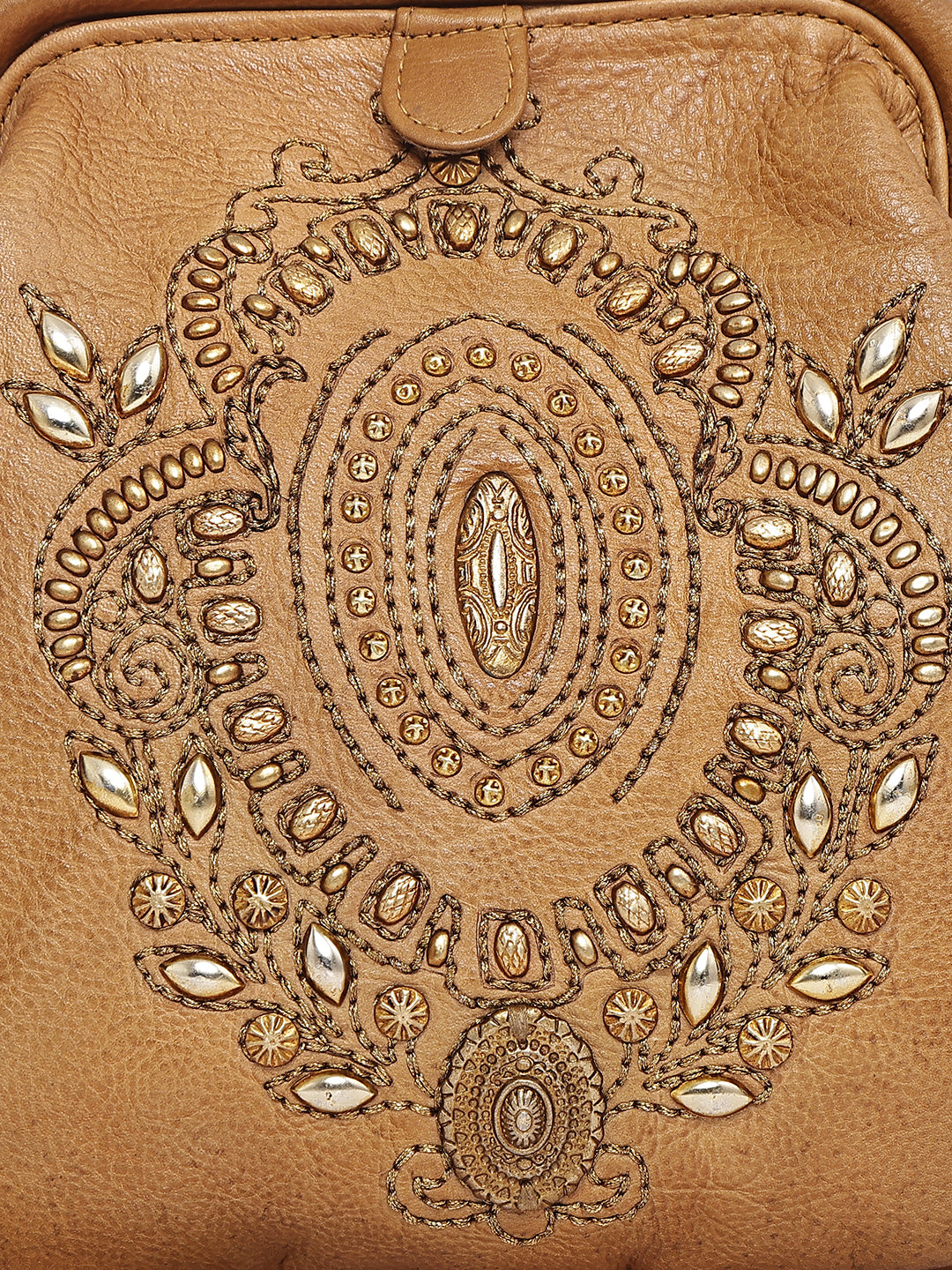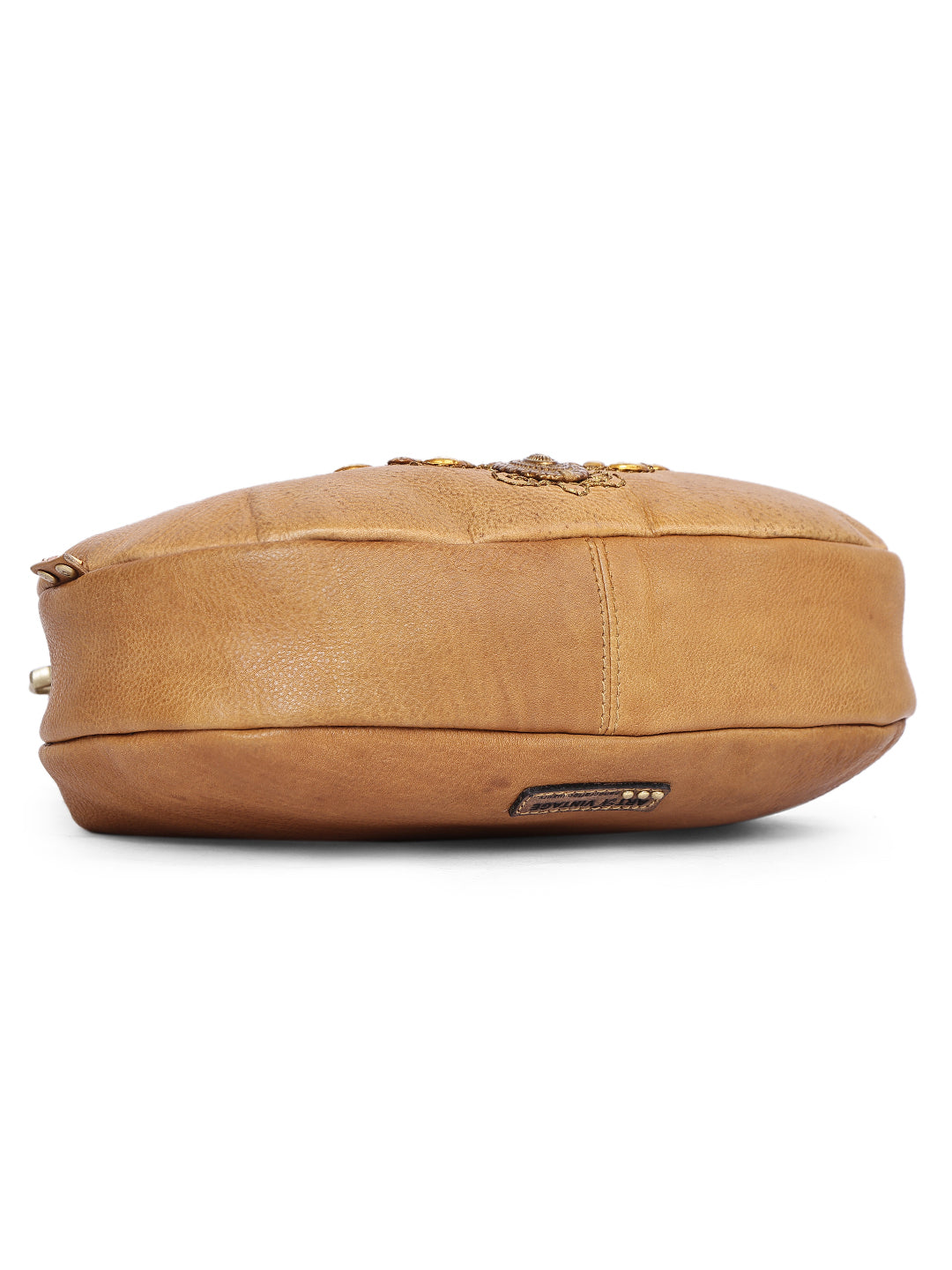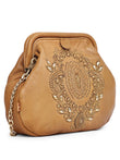 Zareen Camel Embroidered Handcrafted Leather Crossbody Bag